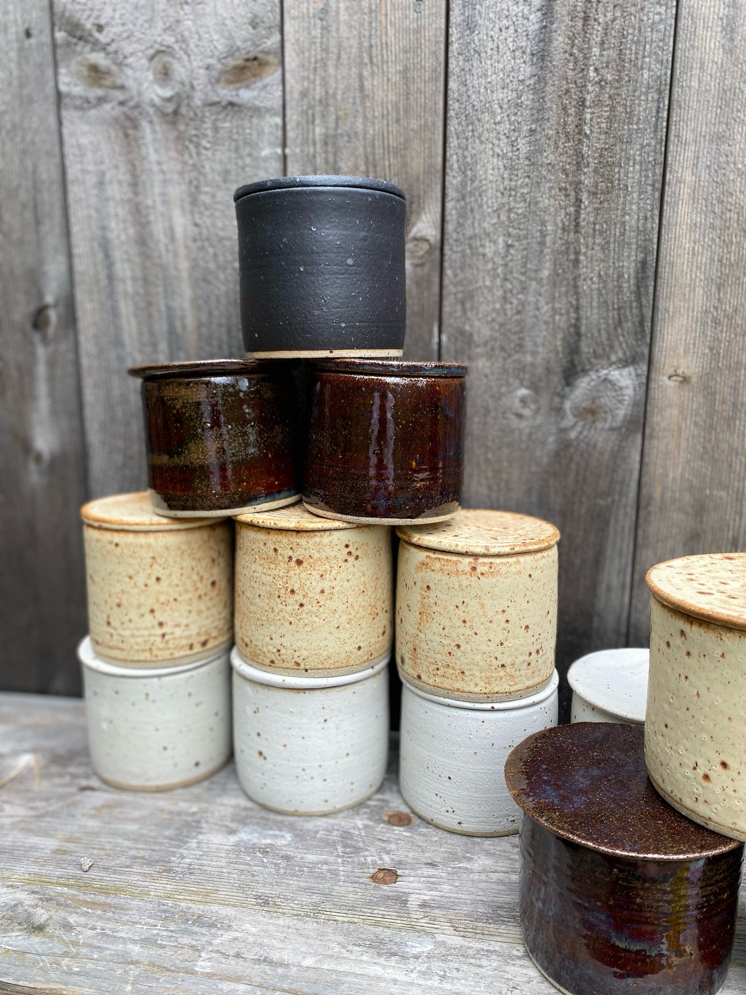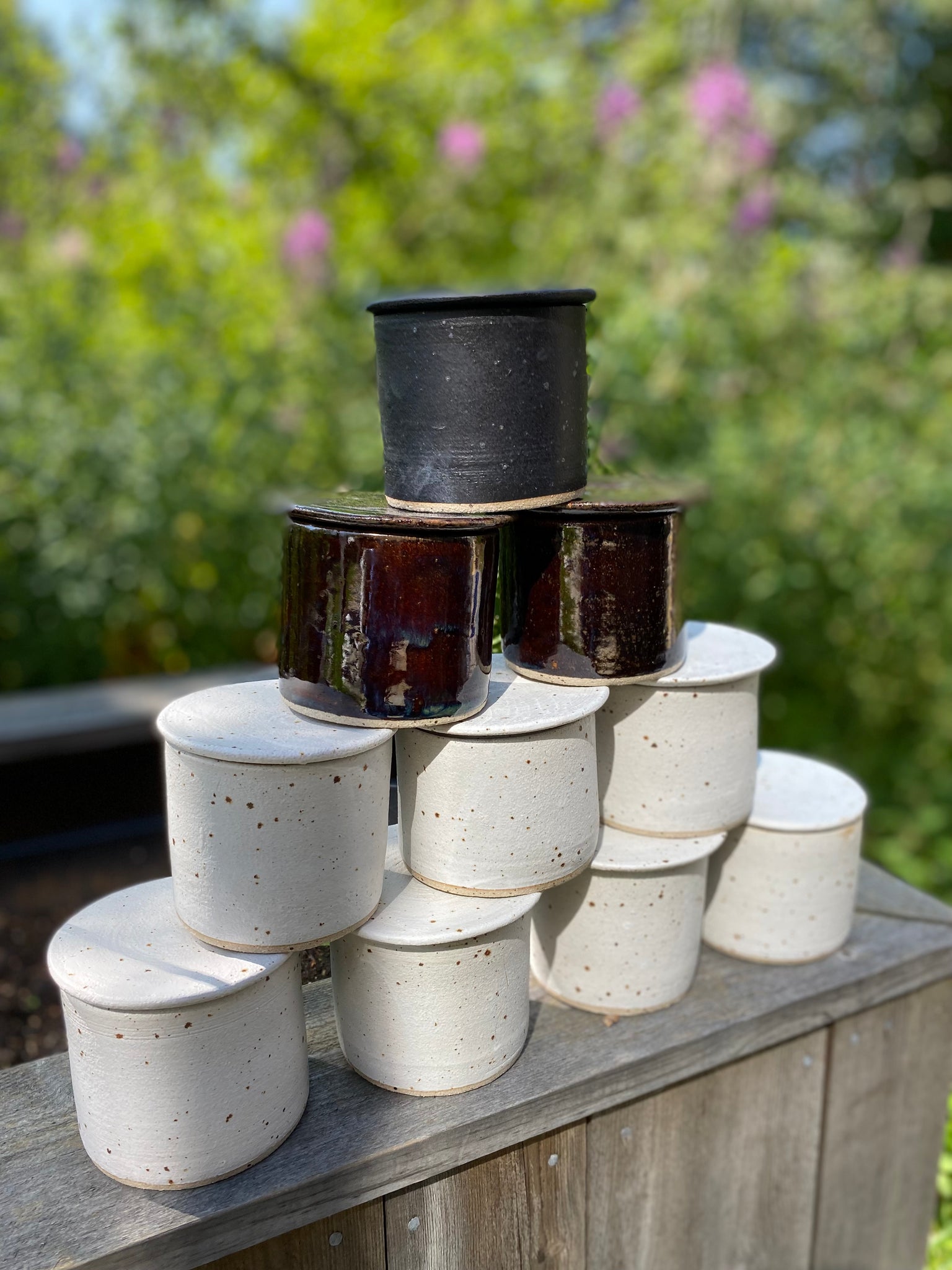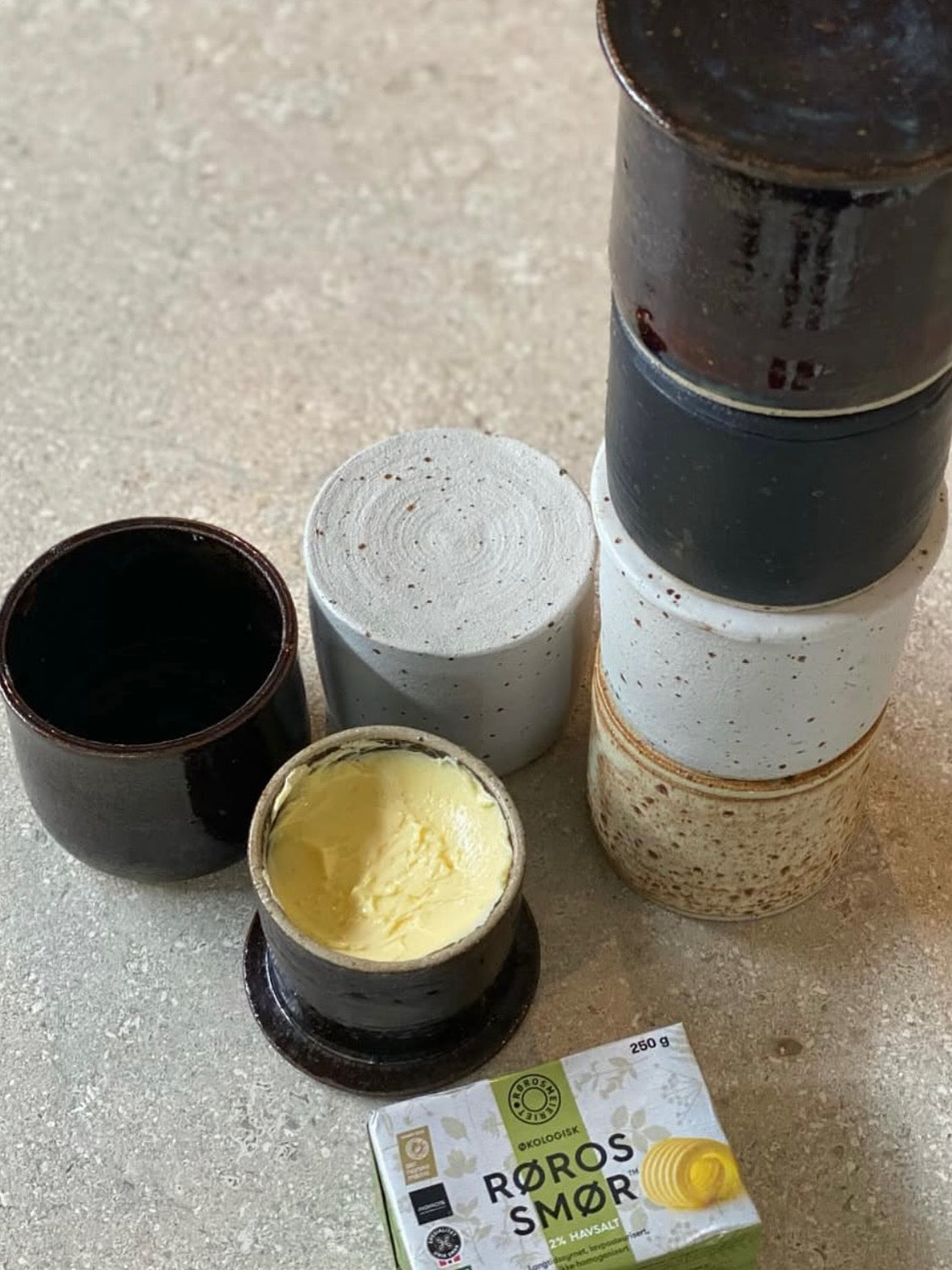 Håndlaget smørklokke i keramikk. Dreid i steingods leire. Lages på bestilling. Betales ved bestilling. Glasurfarger du kan velge mellom er hvit matt, sort matt, beige matt eller brun blank. De lyse fargene får en prikkete finish pga lavapletter i leiren. ( skriv i nedtrekksfeltet hvilken farge du ønsker)